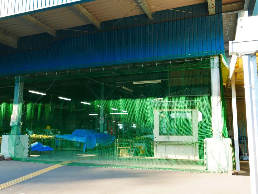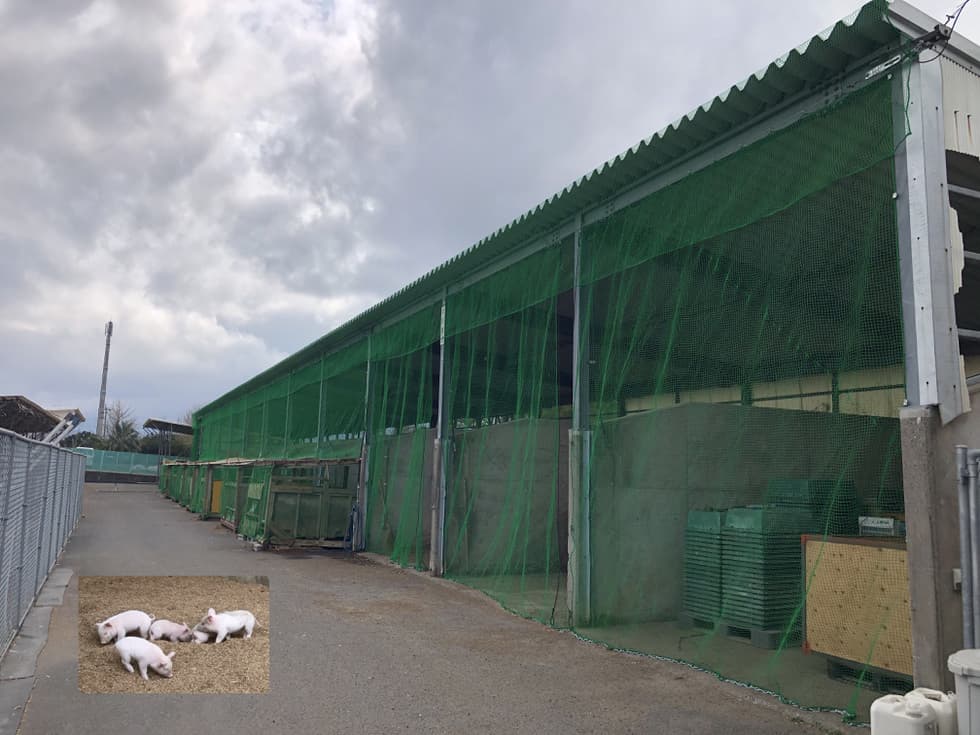 牛舎の防鳥ネット。防風ネットも兼ねている箇所もあります。