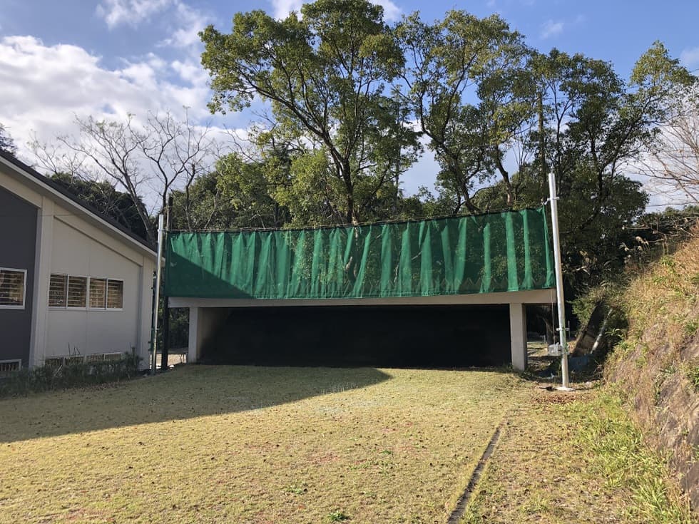 打席前面は芝でなく斜面ネットによる勾配集球。